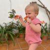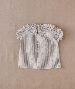 Camisa bebe cuello volante tiene un diseño exclusivo de iló-liló tejido en algodón 100%, tiene un cuello de volante súper favorecedor con unas mangas cortas en forma de farol con elástico que no aprieta así como una pinza en el pechito.