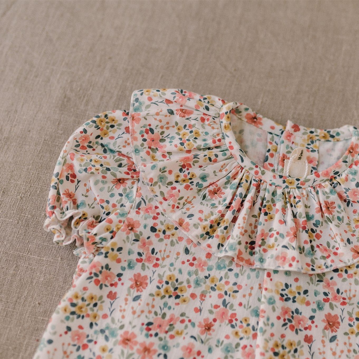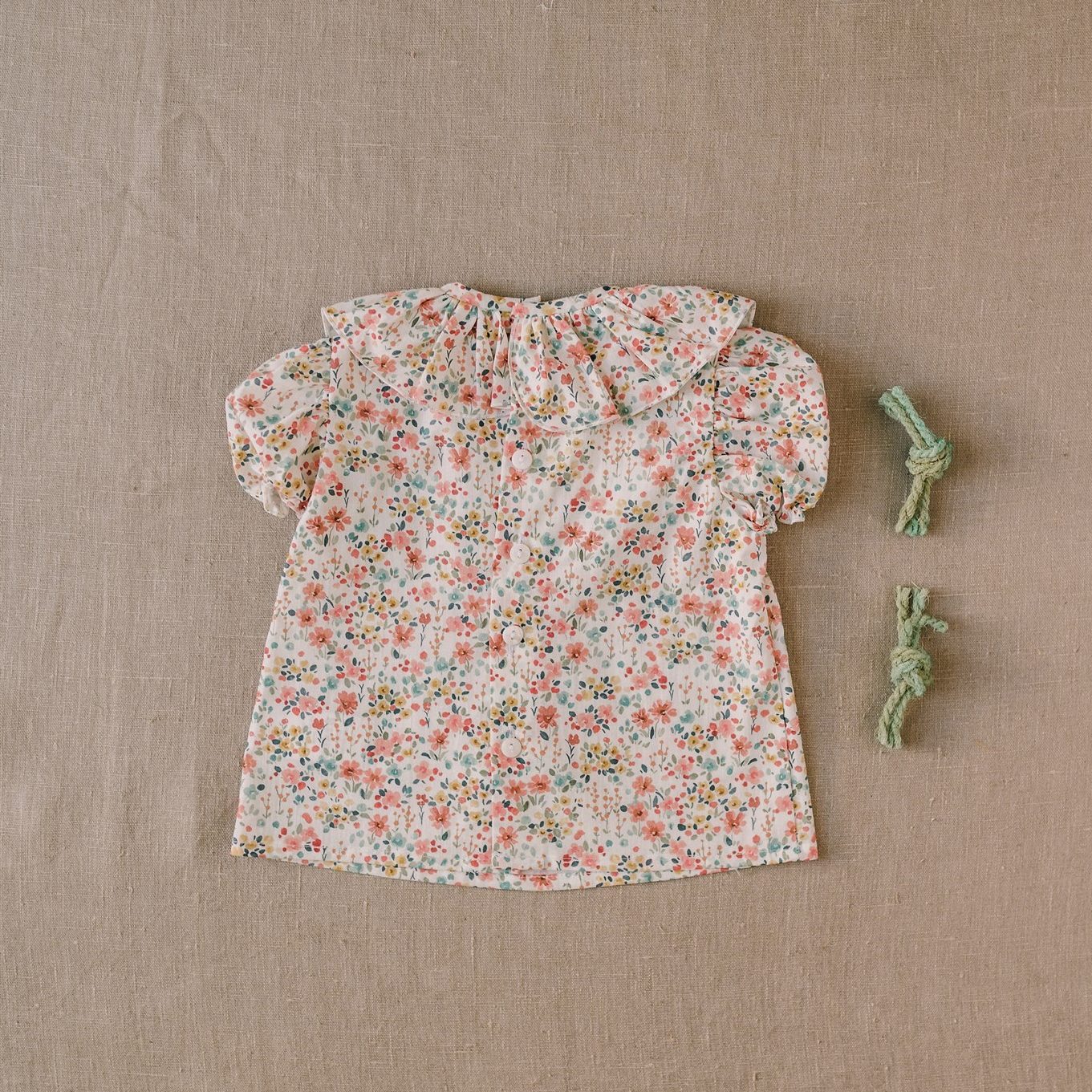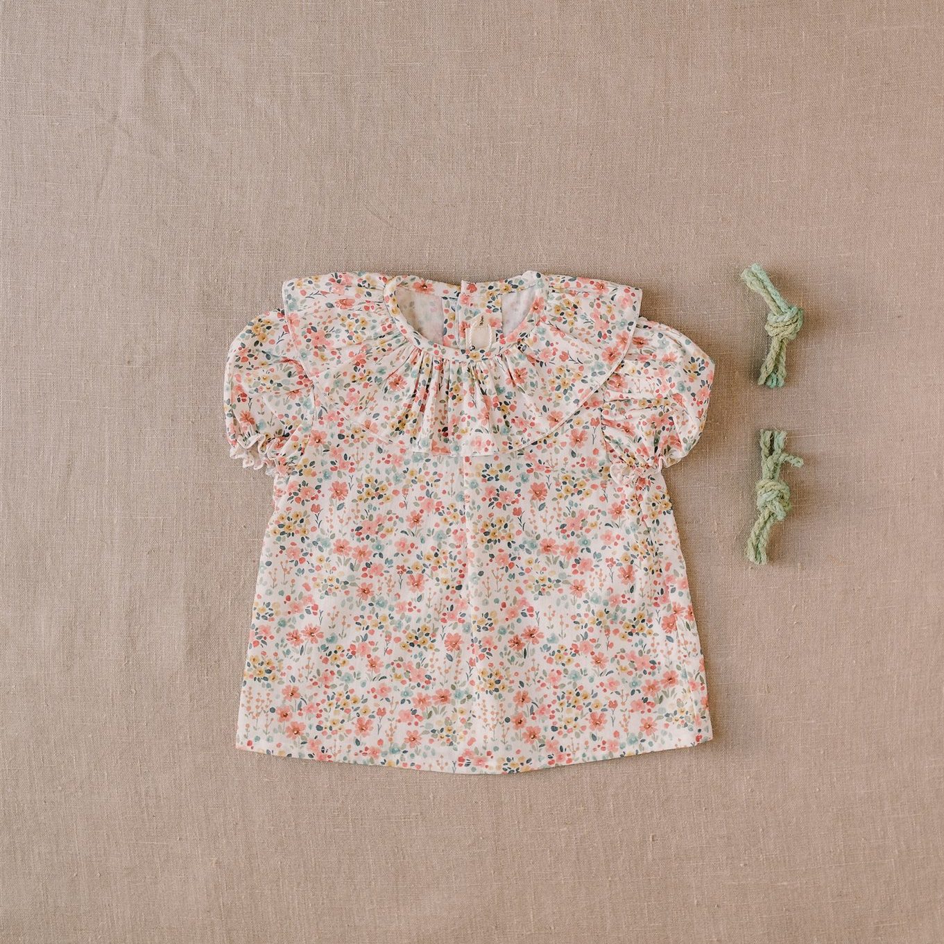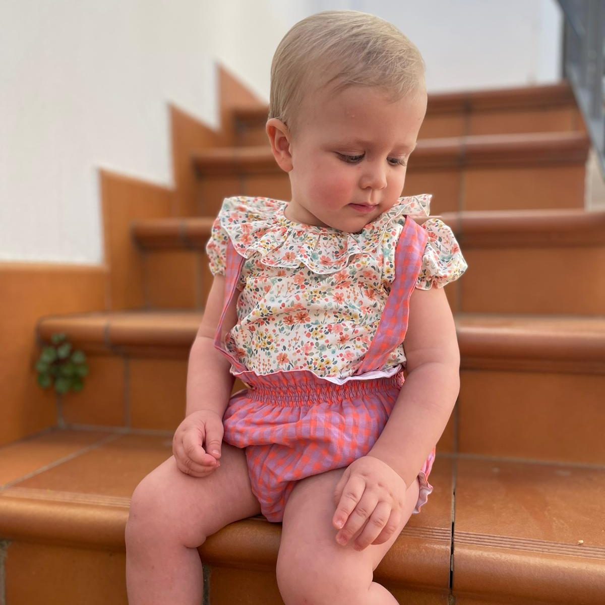 Camisa bebe cuello volante tiene un diseño exclusivo de iló-liló tejido en algodón 100%, tiene un cuello de volante súper favorecedor con unas mangas cortas en forma de farol con elástico que no aprieta así como una pinza en el pechito.