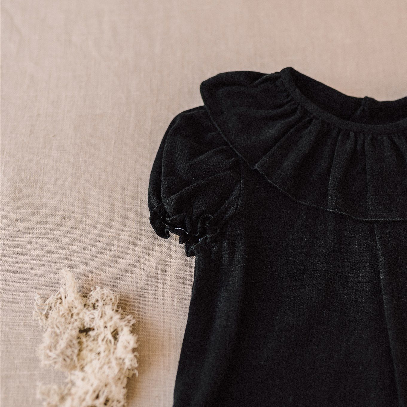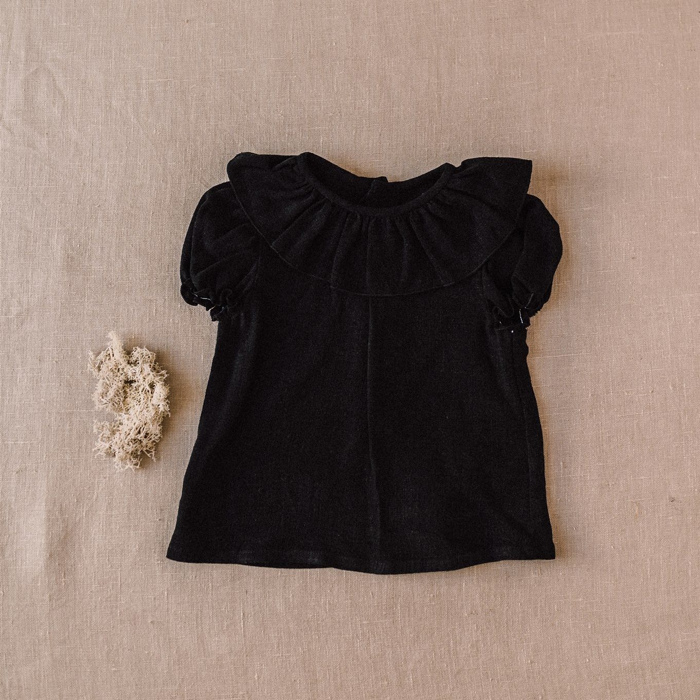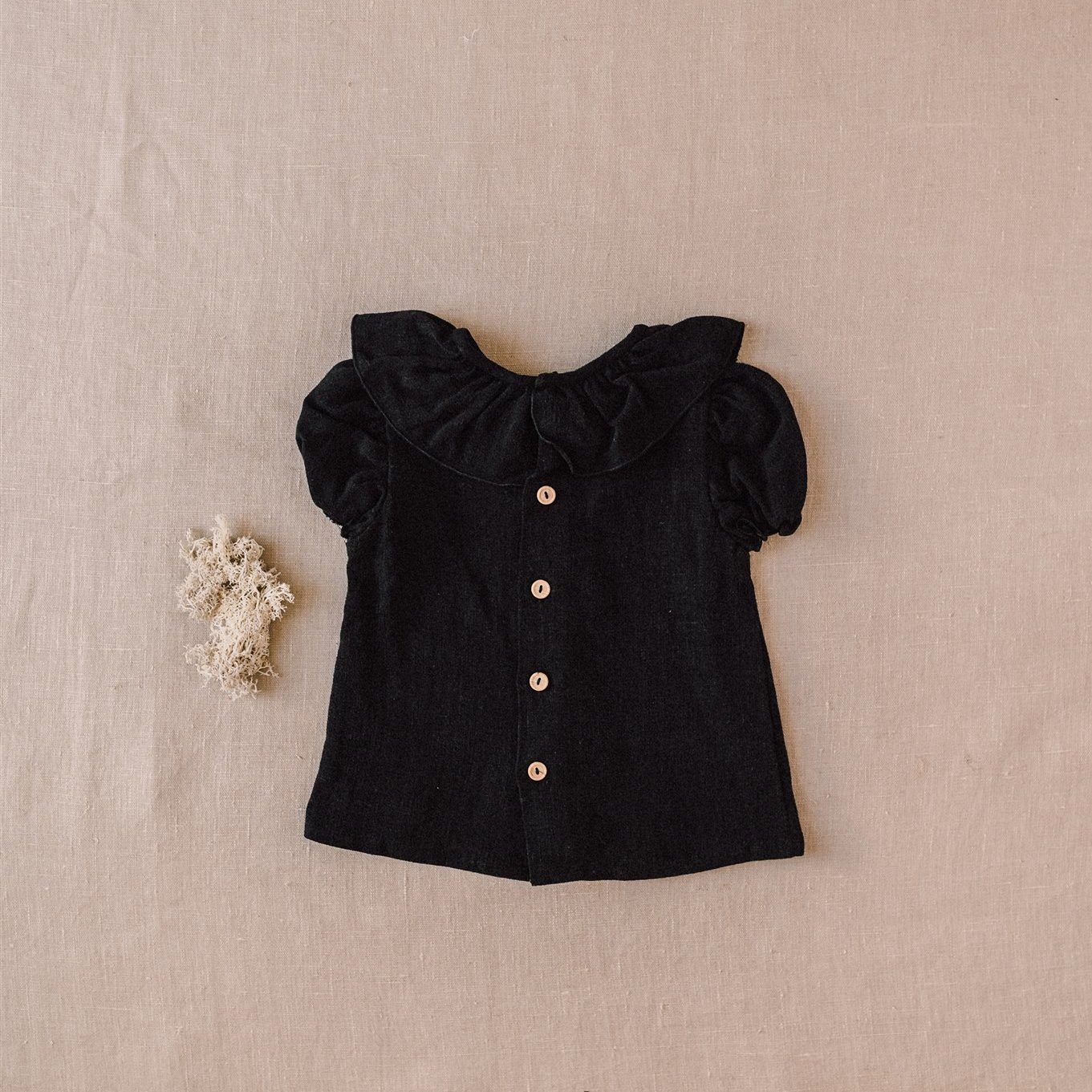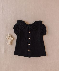 Camisa bebe cuello volante tiene un diseño exclusivo de iló-liló tejido en lino, tiene un cuello de volante súper favorecedor con unas mangas cortas en forma de farol con elástico que no aprieta así como una pinza en el pechito.