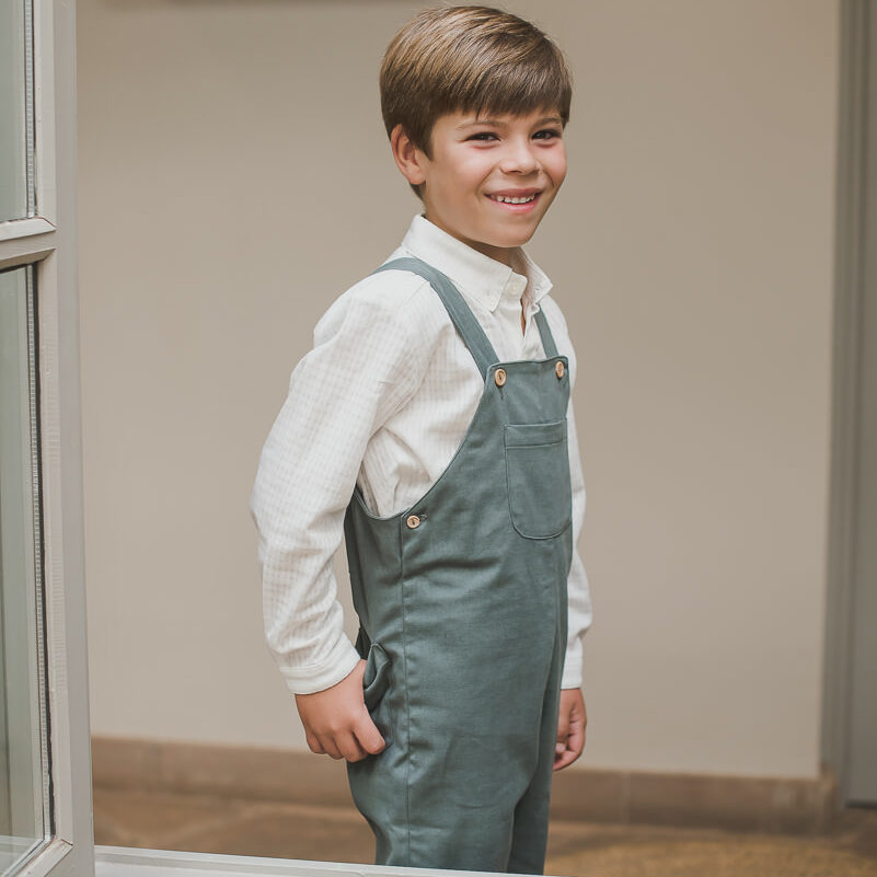 Camisa en tono crudo. Tiene botones en el cuello. Manga larga con terminación en puño abotonado.Logo bordado a la altura del costado izquierdo. Es entera abotonada por la parte delantera, incluido el cuello. Botones de madera.Los puños cierran con un botón pequeño.