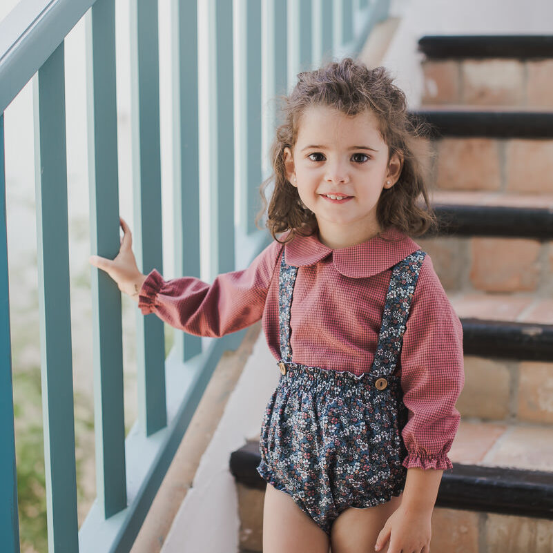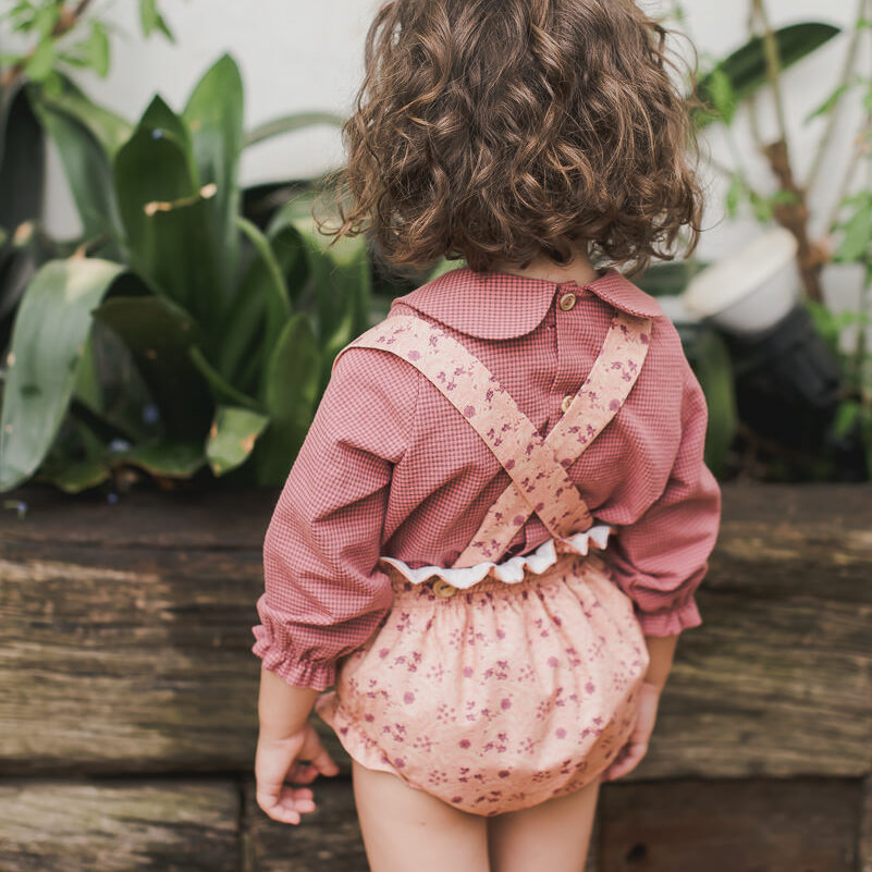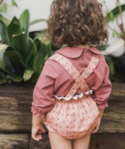 El Pelele con cuello cuello bebe, tiene un cuello redondo abierto por delante y por detrás, es un pelele de manga largas con puños fruncidos y volantitos en las piernas. Es un tejido 100% algodón extrasuavizado. El pelele tiene un estampado de cuadros vichy rosas súper favorecedor. Las mangas son fruncidas y las piernas también , se cierra por la espalda y por el pañal y esto es es muy cómodo para los pequeños y no tan pequeños.