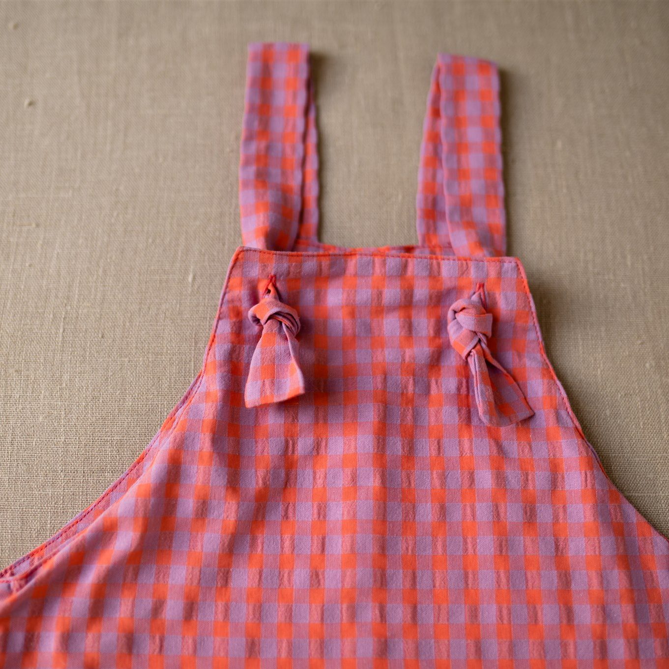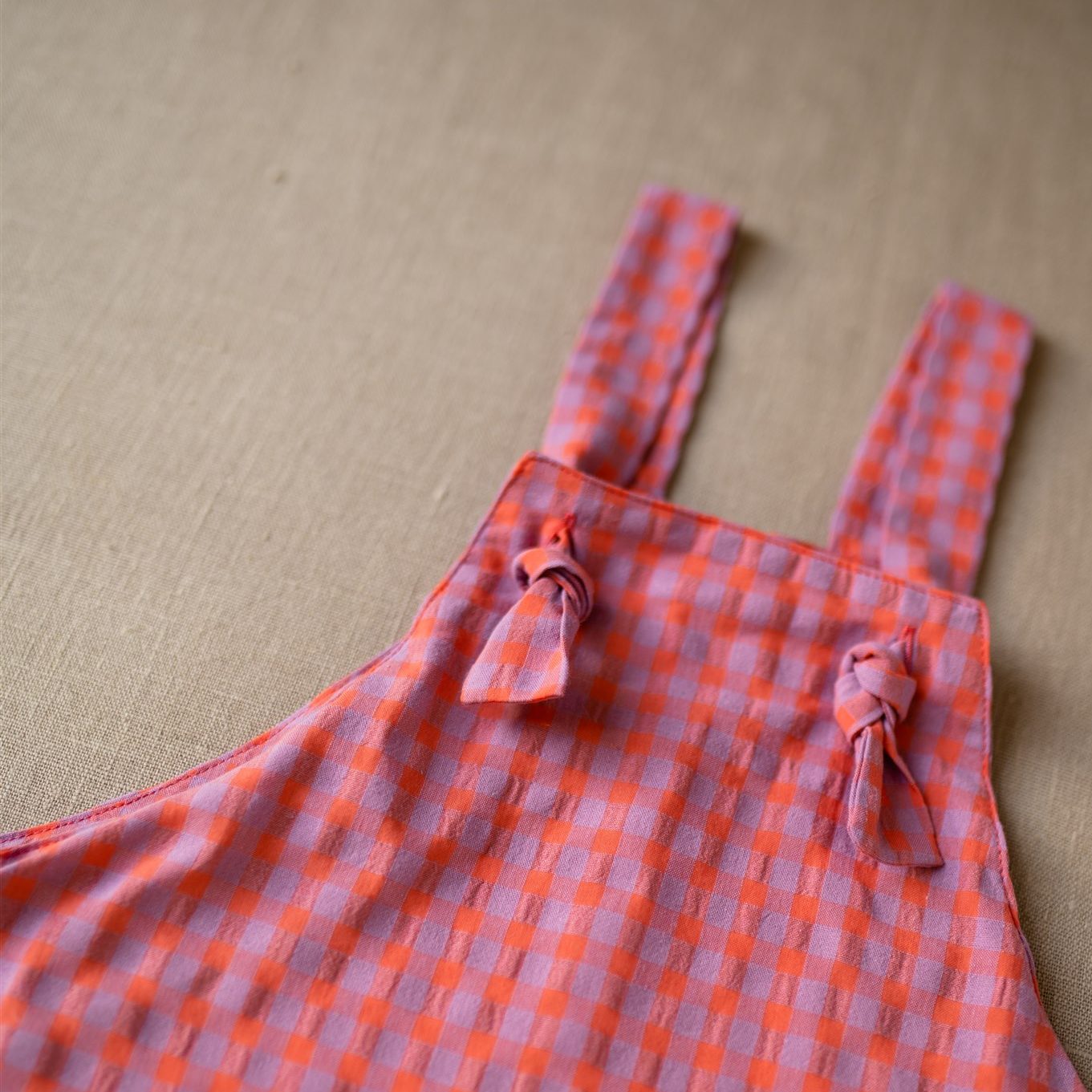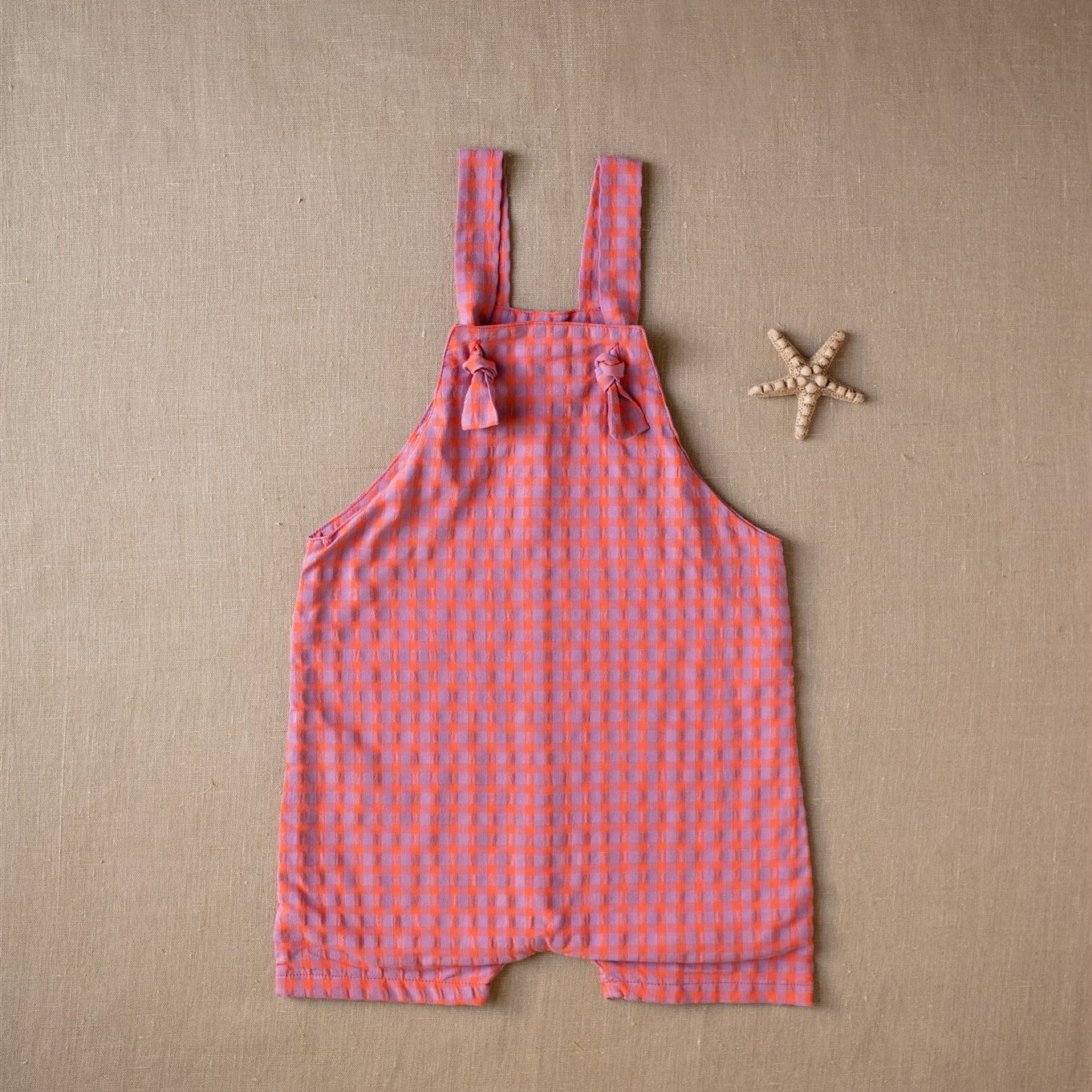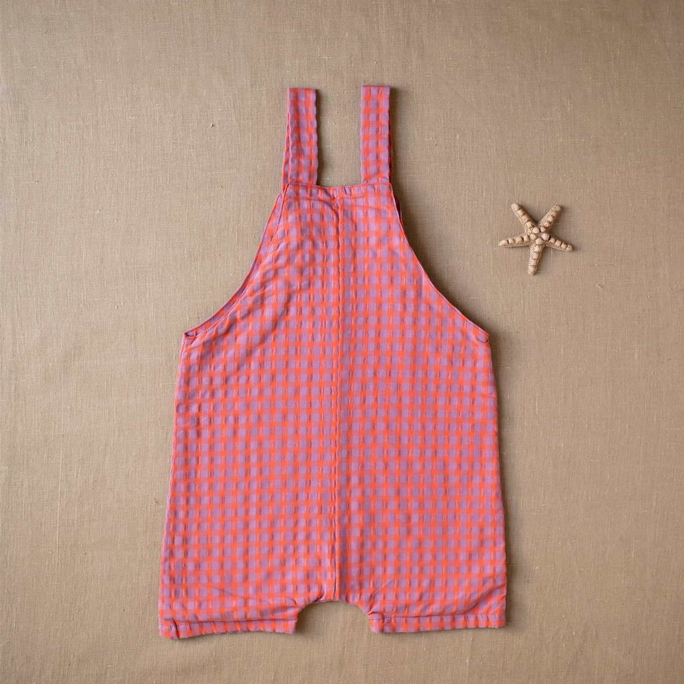 Nuestro PetoCapri Unisex, tiene un tejido de vichy en tonos coral y malva. Cierra sus tirantes con dos botones de madera ideales. Tiene una largura aproximadamente a la rodilla, según la altura de nuestros pequeños. Es una prenda unisex, fresquita y veraniega.