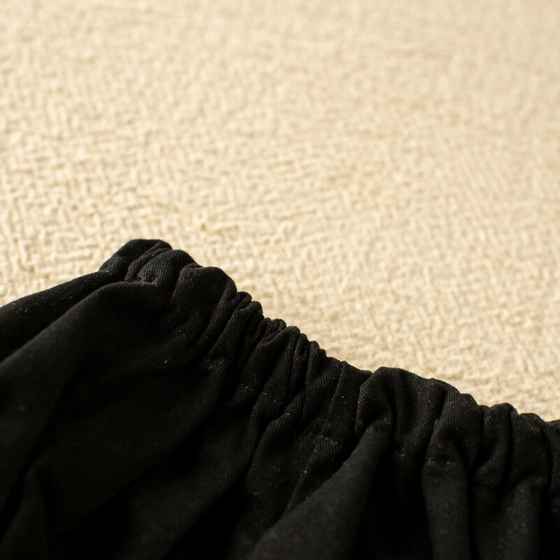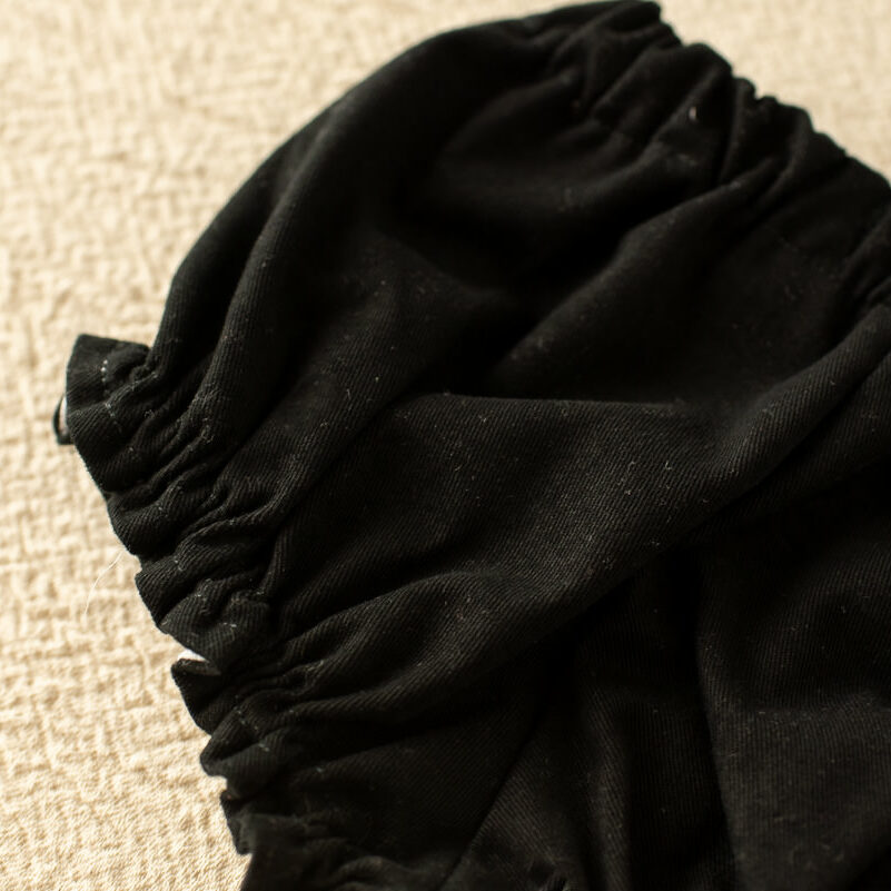 Lleva elástico en la cintura y en las piernas para adaptarse correctamente, es un elástico muy finito que recoge muy bien pero no aprieta.