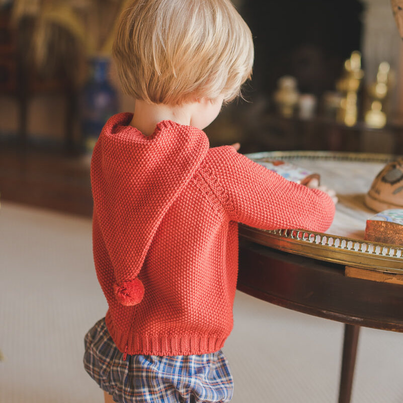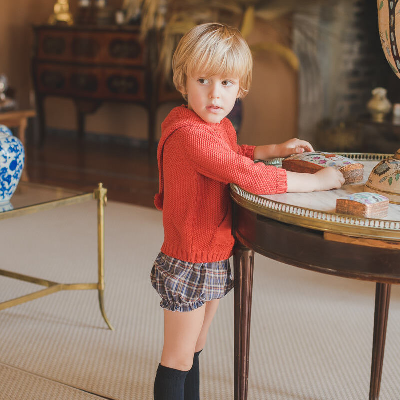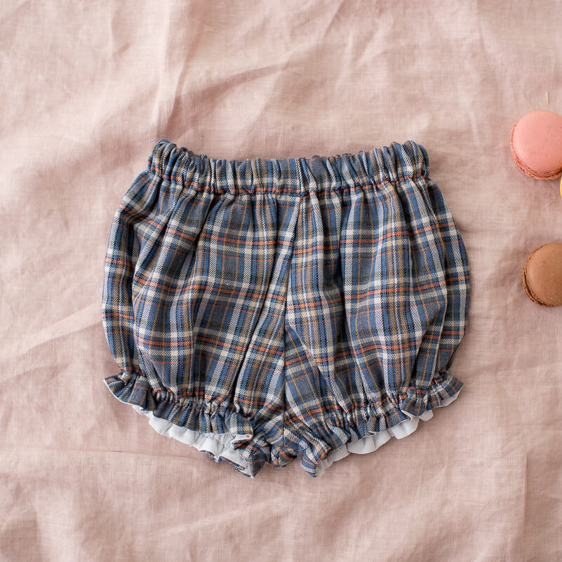 El Pololo Edimburgo es de un tejido de viyela de cuadros tartan en tonos azules, naranjas y cruditos.