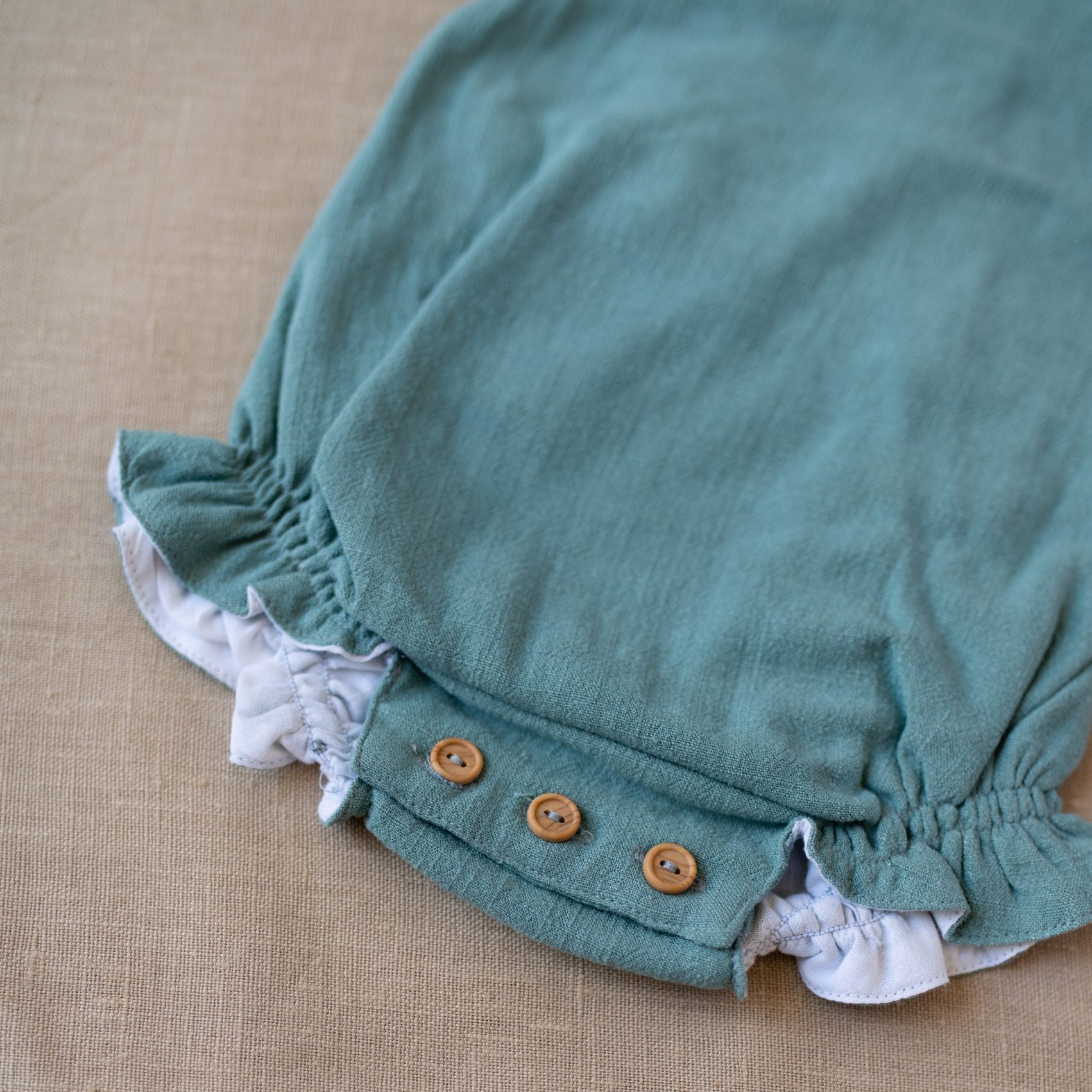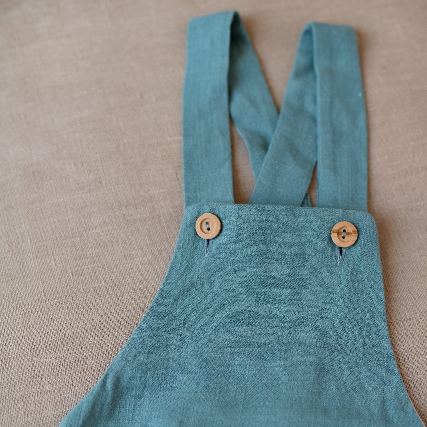 Petito de lino verde agua, el tejido contiene viscosa, lo que le hace que tenga una caída ideal.